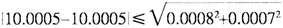 將以上這兩套裝置對(duì)同一臺(tái)0.001級(jí)的pH計(jì),在pH=10.000和pH=4.000兩點(diǎn)上的檢測(cè)數(shù)據(jù)及兩套裝置對(duì)該級(jí)別的擴(kuò)展不確定度代入式(1),計(jì)算并進(jìn)行判別。