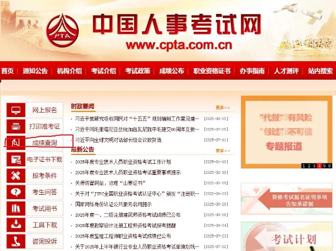 2025年注冊計量師職業(yè)資格考試成績由中國人事考試網(wǎng)發(fā)布,查分通道開通后可登錄http://www.cpta.com.cn/查詢。